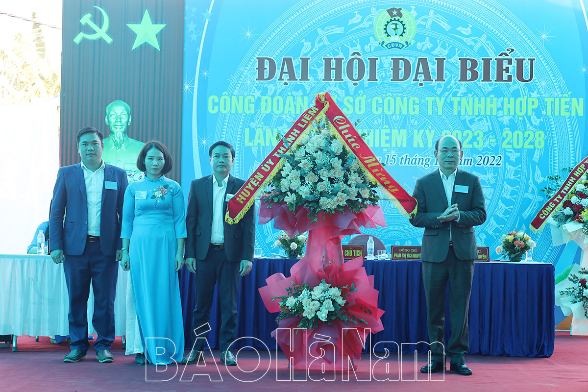 Chiều 15/12, Công đoàn cơ sở (CĐCS) Công ty TNHH Hợp Tiến tổ chức Đại hội đại biểu lần thứ III, nhiệm kỳ 2023-2028. Đây là đơn vị được Liên đoàn Lao động (LĐLĐ) huyện Thanh Liêm chỉ đạo tổ chức đại hội điểm cấp CĐCS khối doanh nghiệp để rút kinh nghiệm chỉ đạo chung trong toàn huyện.