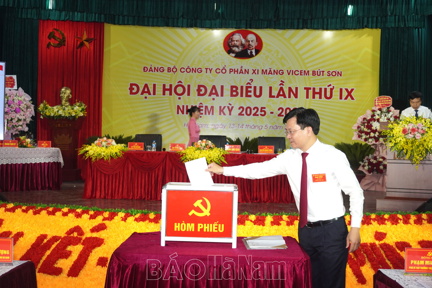 Sáng 14/5, Đảng bộ Công ty cổ phần xi măng Vicem Bút Sơn long trọng tổ chức Đại hội đại biểu lần thứ IX, nhiệm kỳ 2025 - 2030. Dự, chỉ đạo Đại hội có các đồng chí: Nguyễn Đức Vượng, TUV, Phó Chủ tịch UBND tỉnh; Phạm Minh Đức, Phó Bí thư Thường trực Đảng ủy Tổng công ty xi măng Việt Nam; đại diện Thị ủy Kim Bảng; lãnh đạo Công an tỉnh và 150 đại biểu chính thức đại diện cho 412 đảng viên trong toàn Đảng bộ.