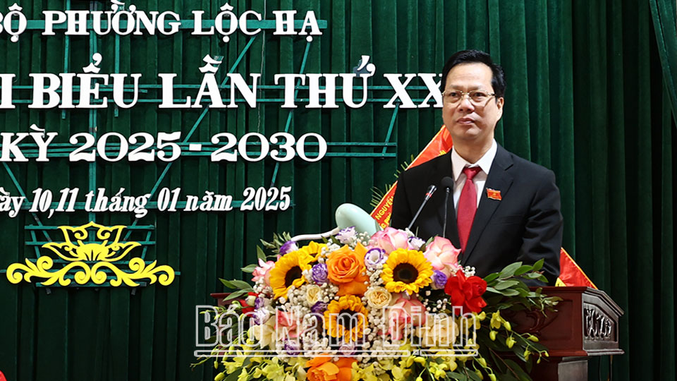 Phát biểu chỉ đạo đại hội, đồng chí Bí thư Thành uỷ Nam Định Nguyễn Anh Tuấn ghi nhận và biểu dương những thành tích, kết quả mà Đảng bộ phường Lộc Hạ đã đạt được trong nhiệm kỳ qua. Đồng chí yêu cầu, thời gian tới Đảng bộ phường cần tiếp tục nâng cao năng lực lãnh đạo, sức chiến đấu của các cấp ủy, tổ chức đảng và đảng viên. Xây dựng, chỉnh đốn Đảng và hệ thống chính trị trong sạch, vững mạnh toàn diện. Tổ chức bộ máy tinh - gọn - mạnh hoạt động hiệu lực, hiệu quả. Tăng cường sự lãnh đạo của các cấp uỷ, tổ chức đảng đối với công tác phòng, chống tham nhũng, lãng phí.