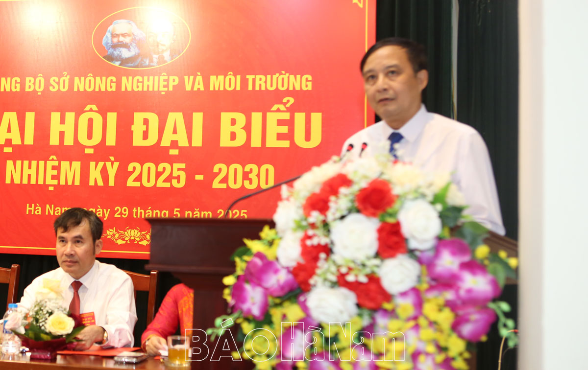 Phát biểu chỉ đạo tại Đại hội, đồng chí Phó Chủ tịch UBND tỉnh Nguyễn Đức Vượng đánh giá cao kết quả đạt được của Đảng bộ Sở NN & MT nhiệm kỳ 2020-2025. Thời gian tới, Đảng bộ Sở NN & MT tiếp tục nâng cao năng lực lãnh đạo, sức chiến đấu của tổ chức đảng, phát huy vai trò tiền phong, gương mẫu của cán bộ, đảng viên; tăng cường công tác kiểm tra, giám sát, xây dựng Đảng bộ trong sạch, vững mạnh toàn diện. Chủ động tham mưu với Tỉnh ủy, UBND tỉnh các cơ chế, chính sách về phát triển nông nghiệp hiện đại, bảo vệ môi trường bền vững, khai thác hiệu quả tài nguyên thiên nhiên. Tăng cường công tác phối hợp với các cấp, ngành, địa phương và cộng đồng doanh nghiệp, huy động và sử dụng hiệu quả các nguồn lực để phát triển nông nghiệp xanh, tuần hoàn và xử lý triệt để các vấn đề môi trường tồn đọng. Quan tâm hơn nữa công tác tổ chức, bộ máy; xây dựng đội ngũ cán bộ ngành NN&MT có tâm, có tầm, có trách nhiệm, đáp ứng yêu cầu nhiệm vụ trong tình hình mới…