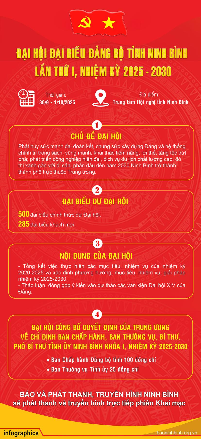 Đại hội đại biểu Đảng bộ tỉnh Ninh Bình lần thứ I, nhiệm kỳ 2025-2030