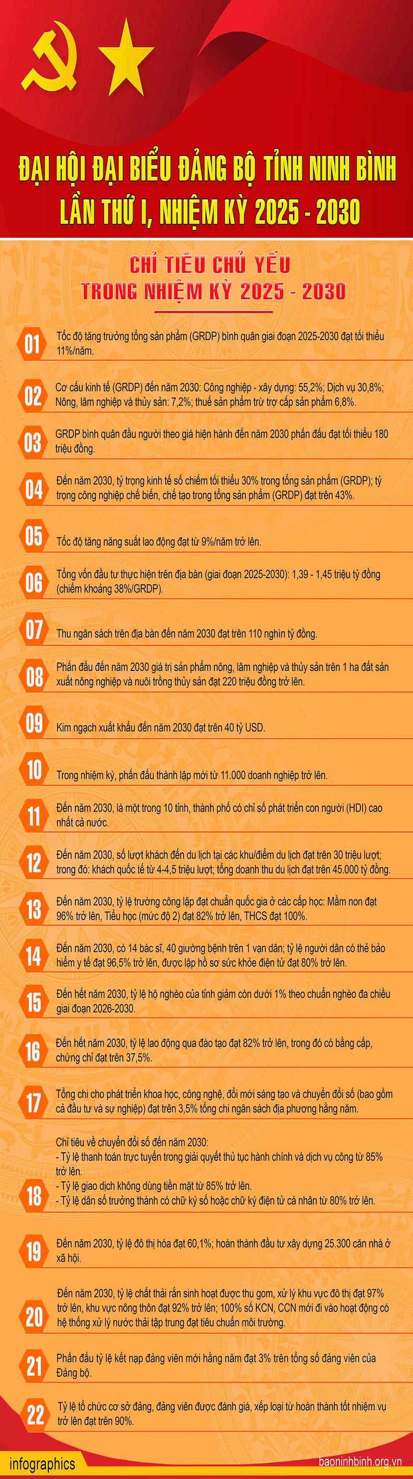 Các chỉ tiêu chủ yếu trong nhiệm kỳ 2025-2030