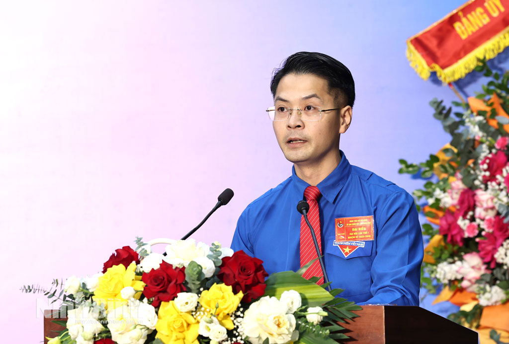 Đồng chí Vũ Ngọc Tâm, Bí thư Đoàn TNCS Hồ Chí Minh UBND tỉnh nhiệm kỳ 2025-2030 phát biểu tại Đại hội.