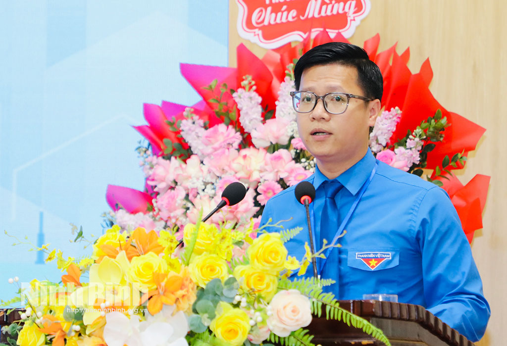 Phát biểu chỉ đạo tại Đại hội, đồng chí Vũ Trần Tùng Anh, Phó Bí thư Tỉnh đoàn, Chủ tịch Hội Liên hiệp Thanh niên Việt Nam tỉnh ghi nhận, biểu dương những kết quả nổi bật mà công tác Hội và phong trào thanh niên phường Hoa Lư đã đạt được trong thời gian qua, đặc biệt trong bối cảnh địa phương mới được sắp xếp, kiện toàn tổ chức. Đồng chí nhấn mạnh, trong nhiệm kỳ tới, công tác Hội cần tiếp tục bám sát nhiệm vụ chính trị của địa phương, phát huy vai trò xung kích, sáng tạo của thanh niên trong tham gia phát triển kinh tế xã hội, xây dựng đô thị văn minh, hiện đại. Trọng tâm là triển khai sâu rộng phong trào “Tôi yêu Tổ quốc tôi” gắn với việc học tập và làm theo tư tưởng, đạo đức, phong cách Hồ Chí Minh, tạo môi trường để thanh niên rèn luyện, cống hiến và trưởng thành. Đa dạng hóa các hình thức tuyên truyền, giáo dục, nâng cao nhận thức chính trị, đạo đức, lối sống cho thanh niên, chủ động nắm bắt tình hình tư tưởng, định hướng dư luận, phát huy vai trò của thanh niên trong đấu tranh phản bác các quan điểm sai trái, thù địch. Đồng thời, chú trọng đổi mới nội dung, phương thức hoạt động của tổ chức Hội, nâng cao chất lượng đội ngũ cán bộ, mở rộng mặt trận đoàn kết, tập hợp thanh niên, nhất là thanh niên trong doanh nghiệp, khu vực ngoài nhà nước. Đồng chí cũng đề nghị Hội LHTN phường tăng cường công tác tham mưu với cấp ủy, chính quyền, đẩy mạnh phối hợp với các ngành, đơn vị, phát huy hiệu quả các nguồn lực xã hội hóa nhằm chăm lo, hỗ trợ thanh niên khởi nghiệp, lập nghiệp, nâng cao năng lực số, đáp ứng yêu cầu trong giai đoạn chuyển đổi số và hội nhập quốc tế.