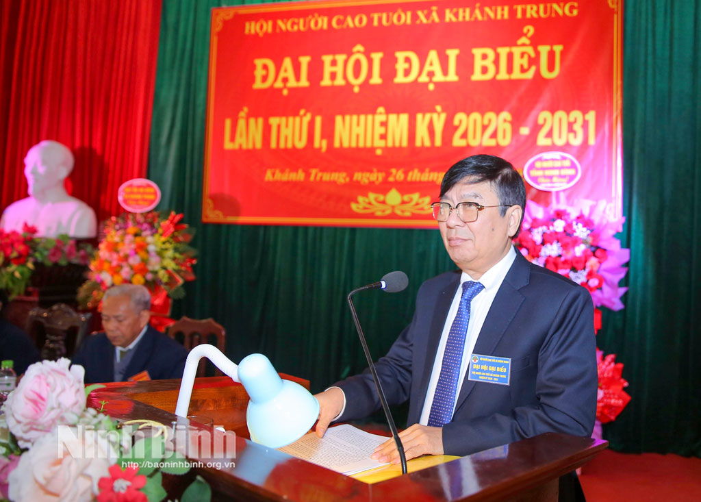 Sáng 26/1, Hội Người cao tuổi (NCT) xã Khánh Trung long trọng tổ chức Đại hội đại biểu lần thứ nhất, nhiệm kỳ 2026-2031. Dự Đại hội có lãnh đạo Hội NCT tỉnh Ninh Bình, lãnh đạo Đảng ủy, HĐND, UBND xã cùng 129 đại biểu đại diện cho 4.426 hội viên của xã.