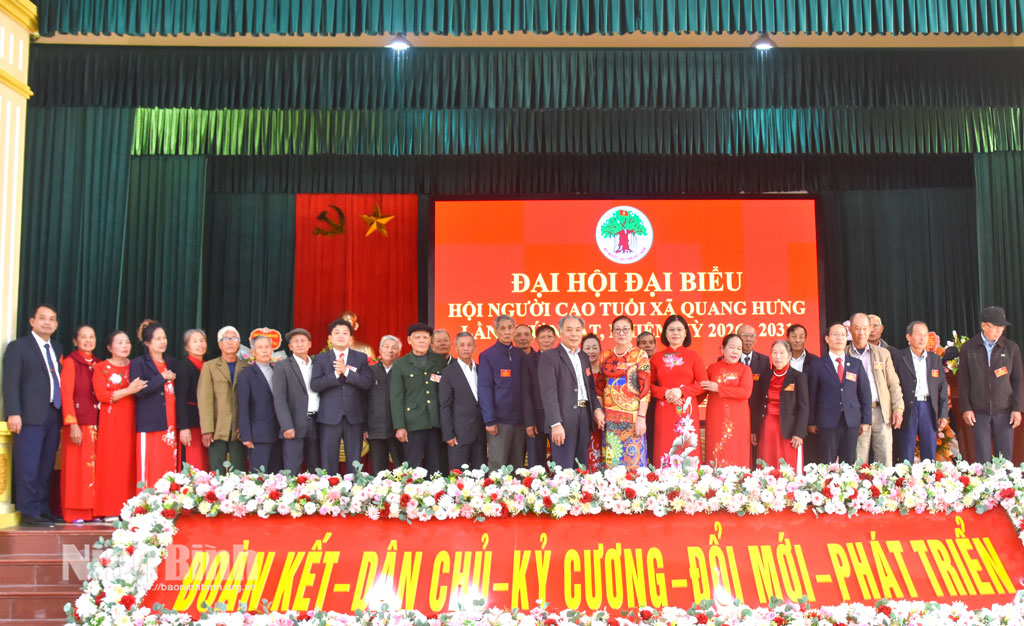 Sáng 27/1, Hội Người cao tuổi (NCT) xã Quang Hưng tổ chức Đại hội đại biểu lần thứ nhất, nhiệm kỳ 2026-2031. Dự Đại hội có đồng chí Trần Thị Định, Tỉnh ủy viên, Bí thư Đảng ủy, Chủ tịch HĐND xã; lãnh đạo Hội NCT tỉnh Ninh Bình, lãnh đạo Đảng ủy, HĐND, UBND xã cùng 140 đại biểu đại diện cho 3.360 hội viên, sinh hoạt tại 20 chi hội trên địa bàn.