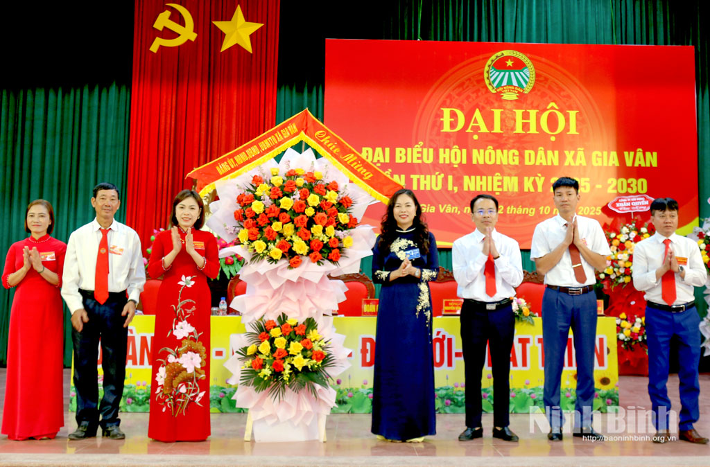 Lãnh đạo xã Gia Vân tặng hoa chúc mừng Đại hội.Lãnh đạo Hội Nông dân tỉnh tặng hoa chúc mừng Đại hội.