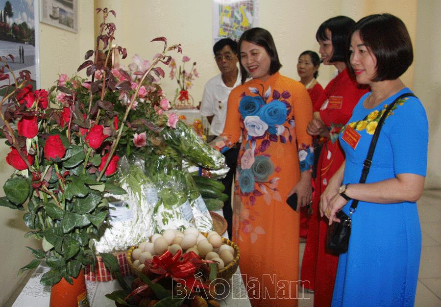 Các đại biểu tham quan gian trưng bày sản phẩm của HND các xã, phường.