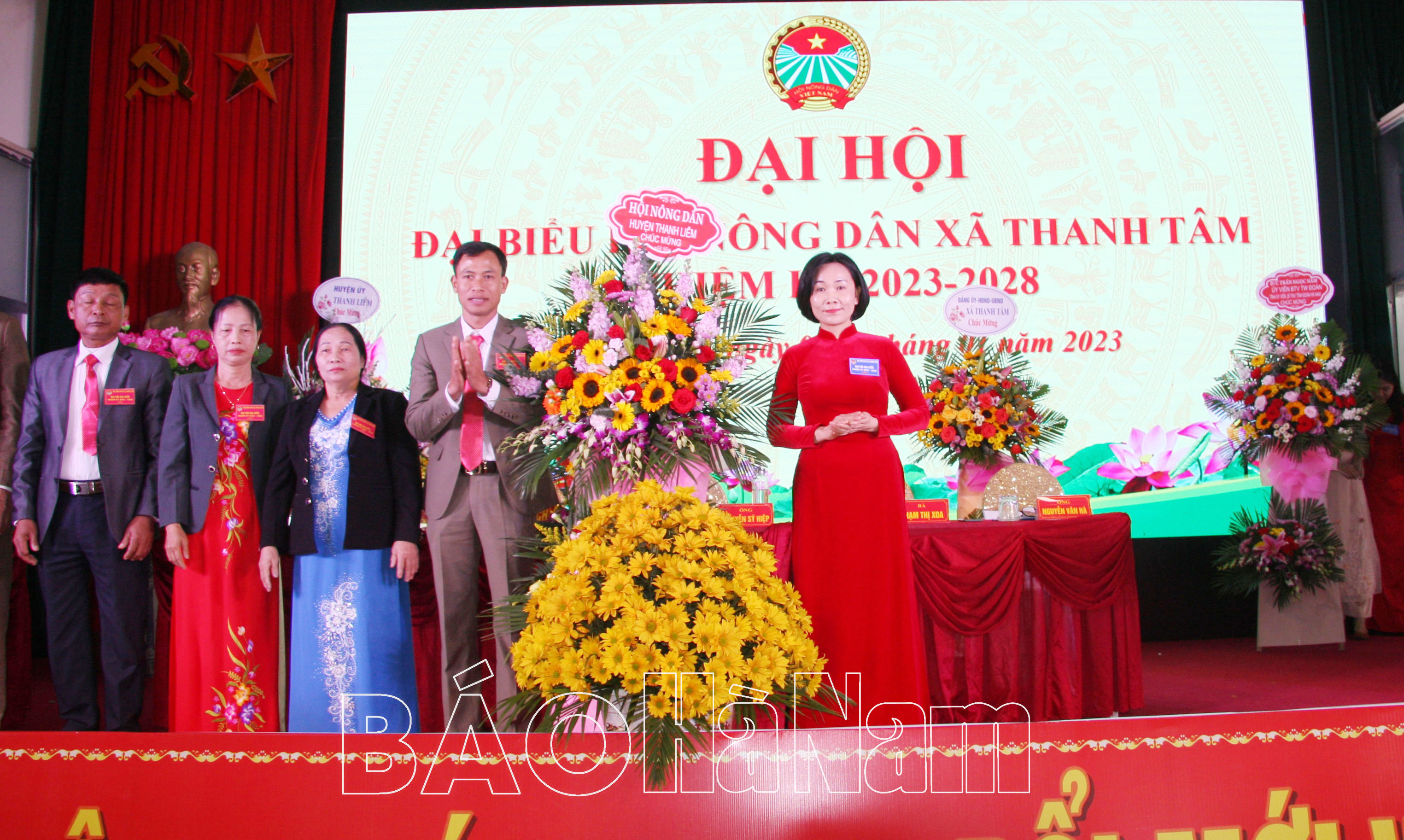 Lãnh đạo HND huyện Thanh Liêm tặng hoa chúc mừng đại hội.