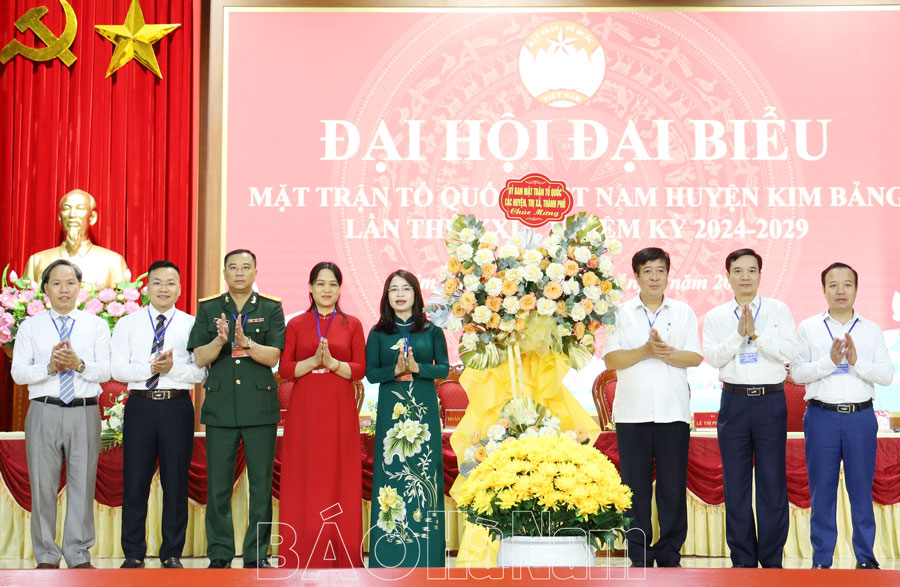 Phát biểu chỉ đạo tại đại hội, đồng chí Chủ tịch Ủy ban MTTQ tỉnh Trần Thị Ngân và lãnh đạo huyện Kim Bảng ghi nhận, biểu dương những kết quả mà MTTQ huyện Kim Bảng đạt được trong nhiệm kỳ qua. Đồng thời, đề nghị nhiệm kỳ tới, Ủy ban MTTQ các cấp huyện Kim Bảng tiếp tục bám sát các quan điểm, chủ trương của Đảng, nhất là Nghị quyết số 43-NQ/TW về tiếp tục phát huy truyền thống, sức mạnh đại đoàn kết toàn dân tộc, xây dựng đất nước ngày càng phồn vinh, hạnh phúc. Tiếp tục đổi mới cách nghĩ, cách làm, tuyên truyền, vận động nhân dân theo hướng toàn dân, toàn diện, có trọng tâm, trọng điểm, phù hợp với thực tiễn. Nâng cao chất lượng các cuộc vận động, phong trào thi đua yêu nước đã được Đảng, Nhà nước, MTTQ Việt Nam phát động và 2 nội dung mới là phong trào thi đua “Cả nước chung tay xóa nhà tạm, nhà dột nát” do Thủ tướng Chính phủ phát động và Chương trình thứ 6 Xây dựng khu dân cư “Tự quản, đoàn kết, ấm no, hạnh phúc”. Phát huy mạnh mẽ dân chủ xã hội chủ nghĩa, nâng cao chất lượng công tác giám sát, phản biện xã hội, góp ý xây dựng Đảng và Nhà nước trong sạch, vững mạnh; tích cực tham gia phòng, chống tham nhũng, tiêu cực. Đẩy mạnh công tác đào tạo, bồi dưỡng cán bộ mặt trận từ huyện đến cơ sở.
