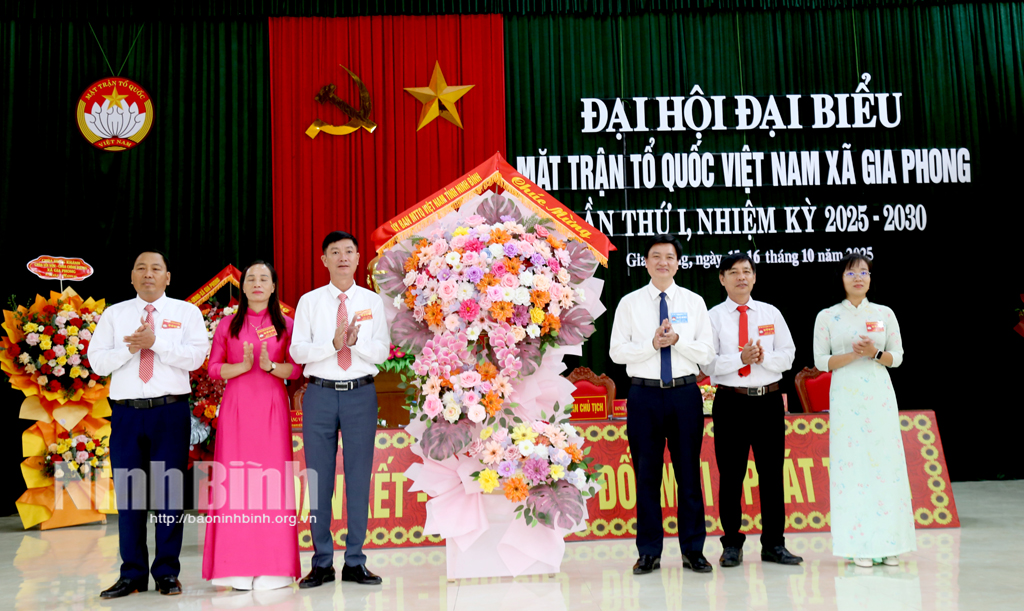 * Dự Đại hội đại biểu MTTQ Việt Nam xã Gia Phong lần thứ nhất, nhiệm kỳ 2025 - 2030 có đồng chí Trần Ngọc Nam, Tỉnh ủy viên, Phó Chủ tịch Ủy ban MTTQ Việt Nam tỉnh, Bí thư Tỉnh đoàn. Cùng dự có lãnh đạo Đảng ủy, UBND xã và 116 đại biểu tiêu biểu đại diện cho khối đại đoàn kết toàn dân trên địa bàn xã Gia Phong.