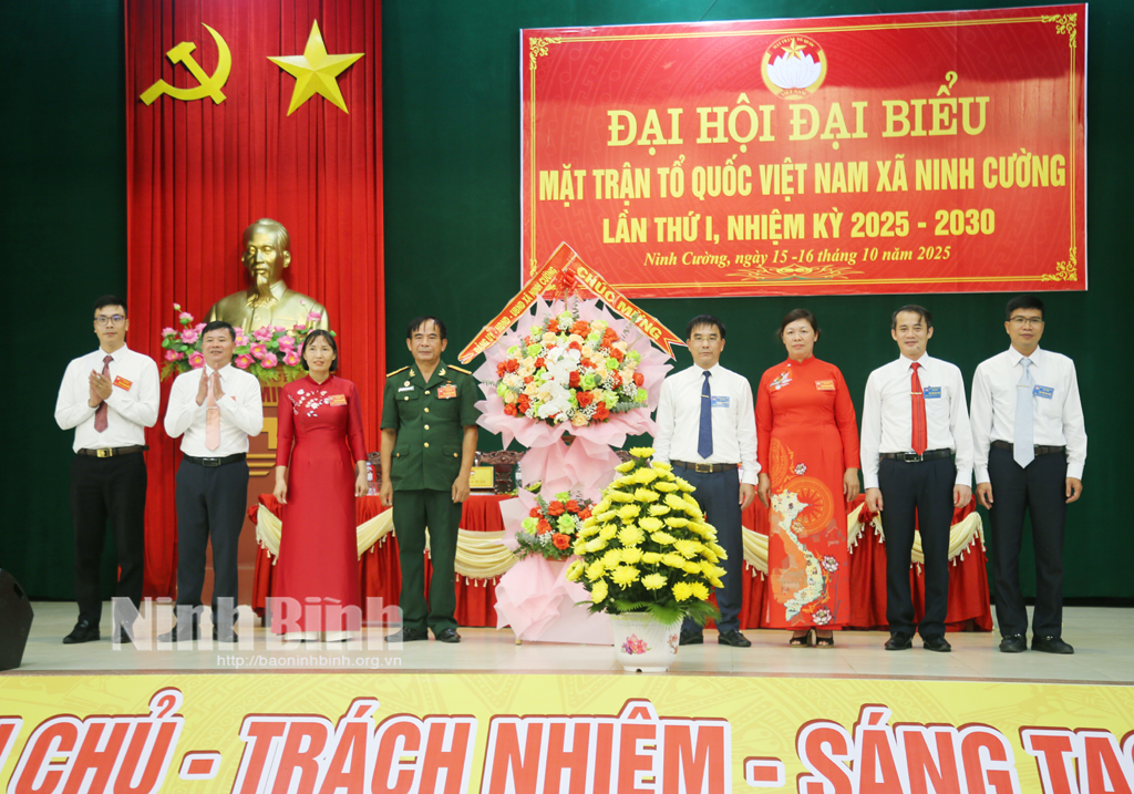 Đại hội đã hiệp thương cử 56 Ủy viên Ủy ban MTTQ Việt Nam xã Ninh Cường khóa I, nhiệm kỳ 2025-2030; hiệp thương cử đại biểu dự Đại hội đại biểu MTTQ Việt Nam tỉnh Ninh Bình lần thứ I, nhiệm kỳ 2025-2030. Bà Đỗ Thị Hường được hiệp thương cử giữ chức Chủ tịch Ủy ban MTTQ Việt Nam xã Ninh Cường nhiệm kỳ 2025-2030.
