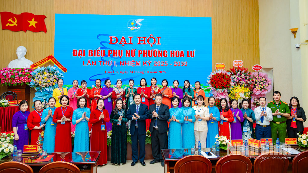 Sáng 24/10, Hội Liên hiệp phụ nữ (LHPN) phường Hoa Lư tổ chức Đại hội đại biểu Phụ nữ phường lần thứ I, nhiệm kỳ 2025-2030. Dự Đại hội có đồng chí Bùi Thành Đông, Tỉnh ủy viên, Bí thư Đảng ủy phường Hoa Lư; lãnh đạo Hội LHPN tỉnh; lãnh đạo MTTQ, các ban, ngành, đoàn thể phường Hoa Lư và các đại biểu phụ nữ tiêu biểu trong phường.