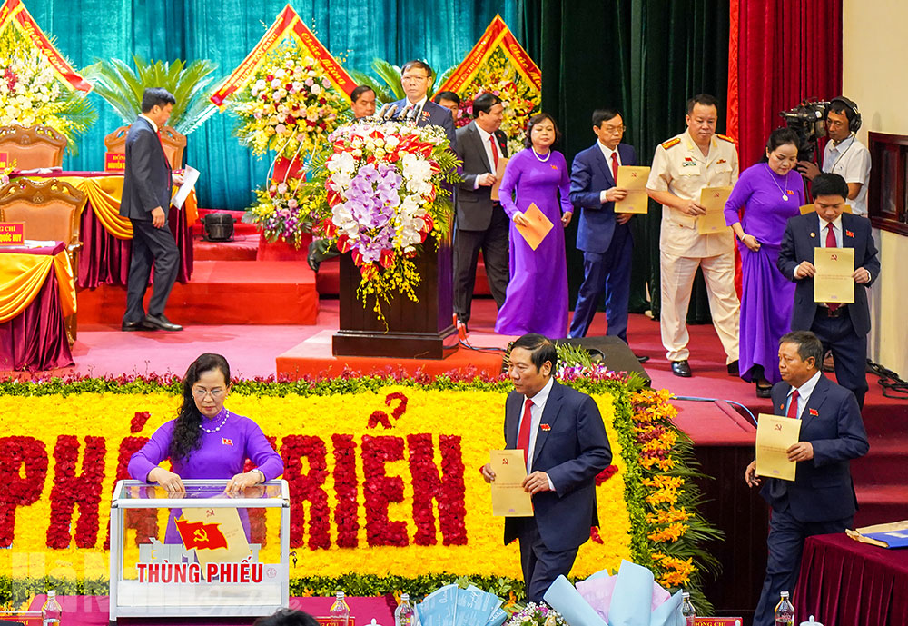 Các đại biểu bỏ phiếu bầu Đoàn đại biểu Đảng bộ tỉnh dự Đại hội toàn quốc lần thứ XIII của Đảng.