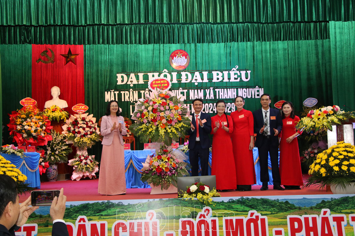 Các vị là ủy viên Ủy ban MTTQ xã Thanh Nguyên khóa XXIX, nhiệm kỳ 2024- 2029 ra mắt Đại hội.Đồng chí Trần Thị Ngân, Ủy viên BTV Tỉnh ủy, Chủ tịch Ủy ban MTTQ tỉnh tặng hoa chúc mừng Đại hội.Lãnh đạo Huyện ủy Thanh Liêm tặng hoa chúc mừng Đại hội.