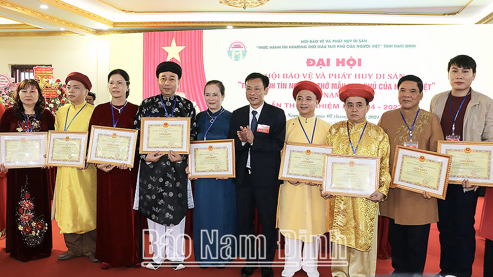 Hội Bảo vệ và phát huy di sản “Thực hành Tín ngưỡng thờ Mẫu Tam phủ của người Việt” tỉnh Nam Định thành lập năm 2020, đến nay có trên 450 hội viên sinh hoạt ở tỉnh hội và 4 chi hội trực thuộc ở các huyện: Hải Hậu, Giao Thủy, Xuân Trường, Nam Trực. Trong nhiệm kỳ qua, Hội đã tổ chức thành công nhiều hoạt động, đóng góp quan trọng trong việc thực hiện Chương trình hành động quốc gia cam kết của Chính phủ với UNESCO sau khi di sản được ghi danh và Đề án “Bảo vệ và phát huy giá trị thực hành tín ngưỡng thờ Mẫu Tam phủ của người Việt ở tỉnh Nam Định đến năm 2030” được UBND tỉnh phê duyệt. Hội và các chi hội đẩy mạnh tuyên truyền giá trị văn hoá, tín ngưỡng di sản, tích cực đấu tranh, phê phán các hành vi làm sai lệch bản chất và giá trị của di sản. Nhiều hội viên đã được các cơ quan quản lý, các tổ chức biểu dương, khen thưởng. Đến nay, Hội có 1 Nghệ nhân Nhân dân và 5 Nghệ nhân Ưu tú. Hội tích cực, chủ động phối hợp với các cơ quan, đơn vị, địa phương tổ chức các cuộc trưng bày triển lãm chuyên đề “Tín ngưỡng thờ Mẫu Tam phủ của người Việt - Bản sắc và giá trị” tại Bảo tàng tỉnh và các sự kiện văn hoá, thể thao lớn trong và ngoài tỉnh; các cuộc hội thảo, tọa đàm, giao lưu, thực hành, trao truyền di sản tại các di tích thờ Mẫu; tham gia hội thảo khoa học về tín ngưỡng thờ Mẫu trong nước và quốc tế; tích cực vận động cộng đồng tín ngưỡng tham gia các hoạt động xã hội, nhân đạo, từ thiện...