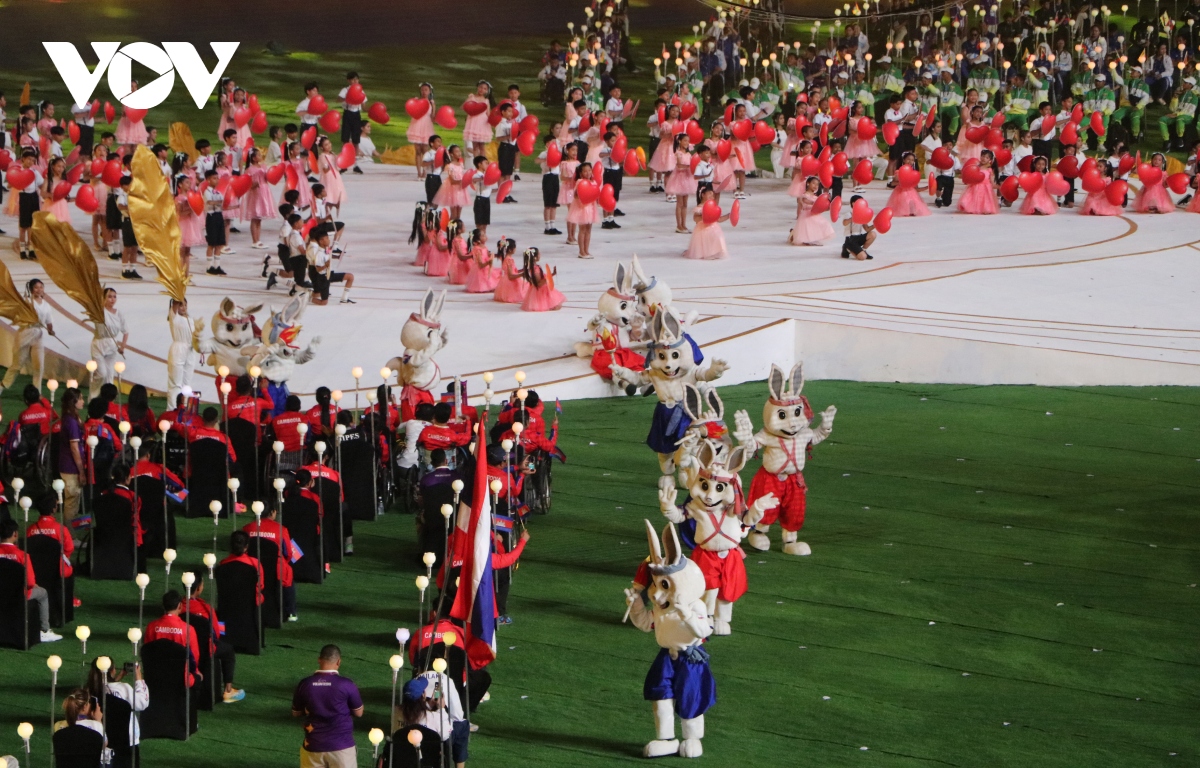Hàng chục nghìn khán giả một lần nữa đã đến lấp đầy các khán đài của sân vận động quốc gia Morodok Techo để tham gia màn chia tay như một bữa tiệc âm thanh và ánh sáng, khép lại kỳ đại hội thể thao lớn nhất dành cho người khuyết tật khu vực Đông Nam Á mà Campuchia lần đầu tiên đăng cai. Điểm nhấn trong phần mở đầu của chương trình bế mạc là ca khúc “Campuchia tỏa sáng” cùng màn trình diễn giáo dục thể chất với môn võ truyền thống Kun Bokator. Sau đó các đoàn thể thao người khuyết tật tham dự đại hội diễu hành qua lễ đài hòa trong nền ca khúc “Ngôn ngữ trái tim”.