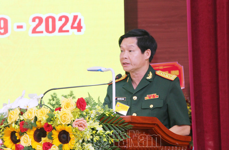 Đại tá Trịnh Hồng Phong, Chỉ huy trưởng Bộ CHQS tỉnh phát biểu chỉ đạo tại đại hội.
