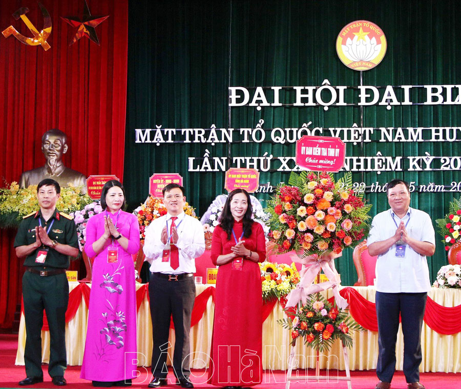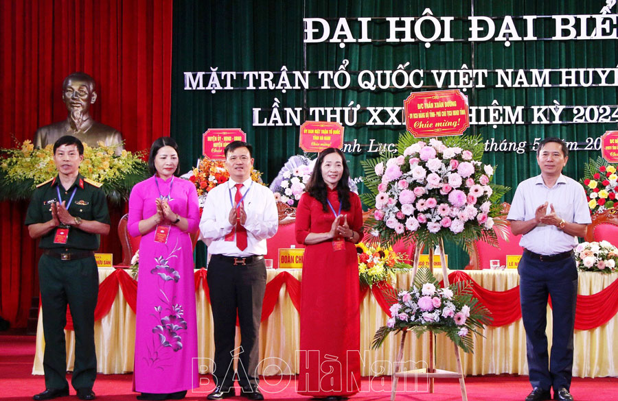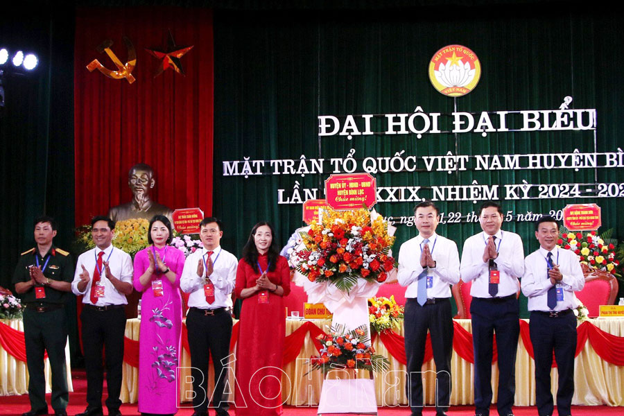 Đồng chí Trần Thị Ngân, Ủy viên Ban Thường vụ (BTV) Tỉnh ủy, Chủ tịch Ủy ban MTTQ tỉnh dự, chỉ đạo đại hội. Đến dự, tặng hoa chúc mừng có các đồng chí: Đặng Thanh Sơn, Ủy viên BTV Tỉnh ủy, Phó Chủ tịch Thường trực HĐND tỉnh; Lê Hồng Quân, Ủy viên BTV Tỉnh ủy, Chủ nhiệm Ủy ban Kiểm tra Tỉnh ủy; Trần Xuân Dưỡng, TUV, Phó Chủ tịch UBND tỉnh; lãnh đạo Văn phòng Tỉnh ủy, Ban Dân vận Tỉnh ủy và một số ban, ngành của tỉnh; lãnh đạo huyện Bình Lục.
