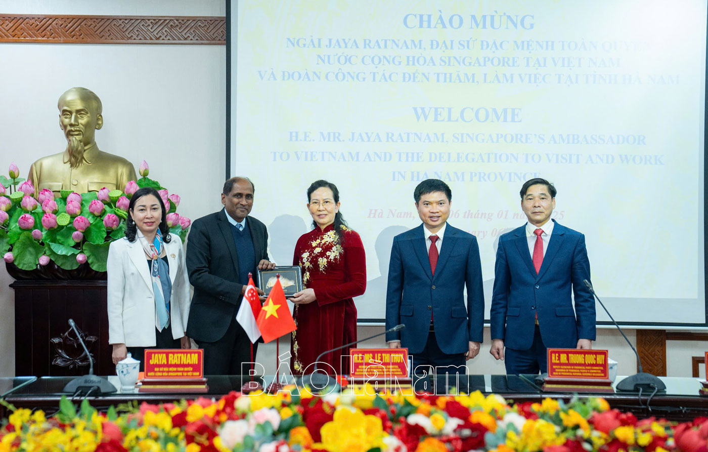 Chiều 6/1, ông Jaya Ratnam, Đại sứ đặc mệnh toàn quyền Singapore tại Việt Nam thăm, làm việc, tìm hiểu môi trường đầu tư tại Hà Nam. Tham gia Đoàn công tác có Đại diện Tập đoàn VSip tại Việt Nam.