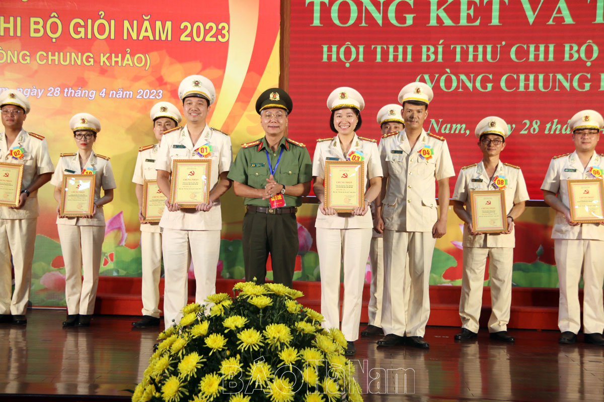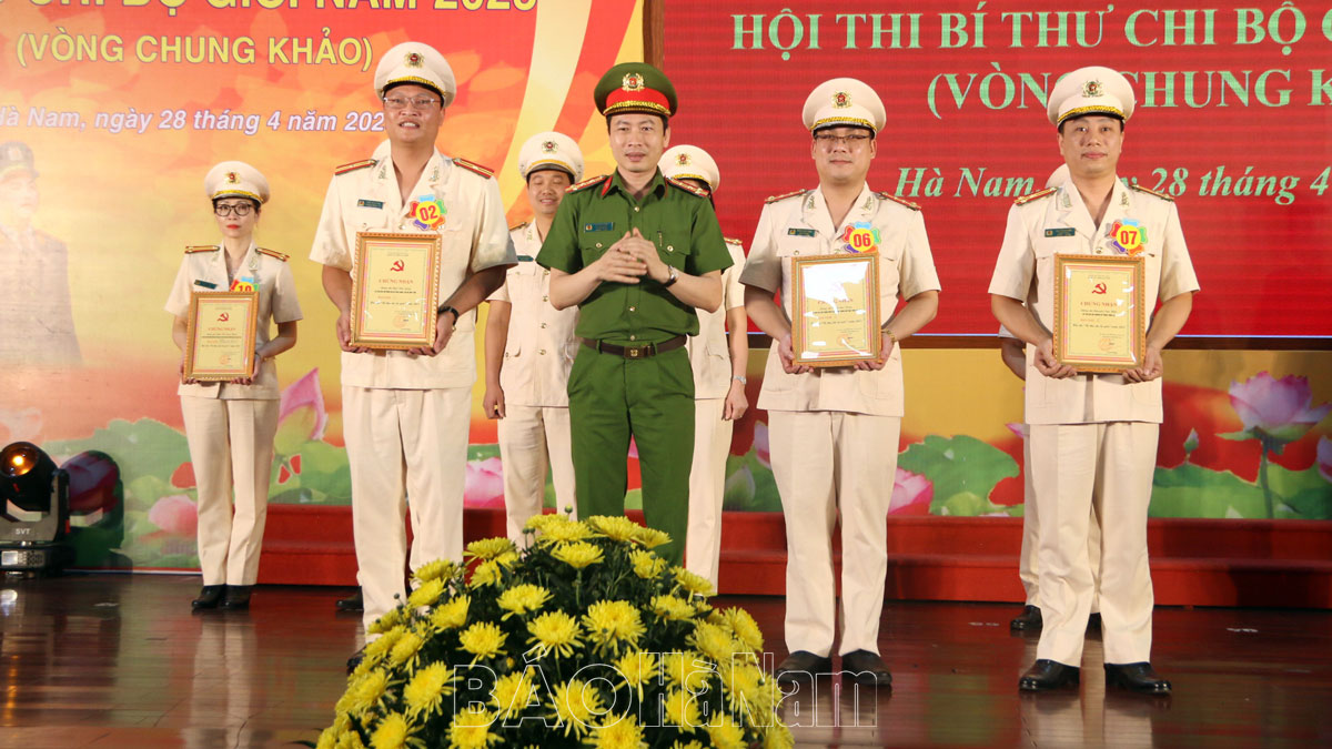 Kết thúc hội thi, Ban Tổ chức đã trao giải Nhất cho thí sinh: Đại úy Trần Văn Thìn, Bí thư Chi bộ chuyên đề nghiệp vụ cơ bản (Đảng bộ phòng Cảnh sát hình sự); 2 giải Nhì cho thí sinh: Thượng tá Nguyễn Thu Phương, Bí thư Chi bộ Phòng Quản lý xuất nhập cảnh và Thiếu tá Nguyễn Văn Hậu, Bí thư Chi bộ 2 (Đảng bộ Phòng Tham mưu); 3 giải Ba cho thí sinh: Đại úy Nguyễn Sơn Tùng, Bí thư Chi bộ tham mưu hậu cần (Đảng bộ Trại Tạm giam), Thượng tá Nguyễn Hữu Đại, Bí thư Chi bộ Phòng Kỹ thuật hình sự, Thiếu tá Ngô Đức Long, Bí thư Chi bộ Công an xã Mộc Nam (thị xã Duy Tiên); trao 4 giải Khuyến khích cho các thí sinh: Trung tá Nguyễn Trung Kiên, Bí thư Chi bộ Đội Cảnh sát giao thông đường thủy (Đảng bộ Phòng Cảnh sát giao thông), Thượng tá Đinh Quang Nam, Bí thư Chi bộ Phòng An ninh đối ngoại, Trung tá Trần Thị Diệu Thúy, Bí thư Chi bộ hướng dẫn công tác Cảnh sát khu vực (Đảng bộ Phòng Cảnh sát quản lý hành chính về trật tự xã hội), Trung tá Phạm Quang Tiến, Bí thư Chi bộ Công an phường Quang Trung (thành phố Phủ Lý). Ngoài ra, Ban Tổ chức còn trao các giải phụ cho các thí sinh tham gia hội thi.
