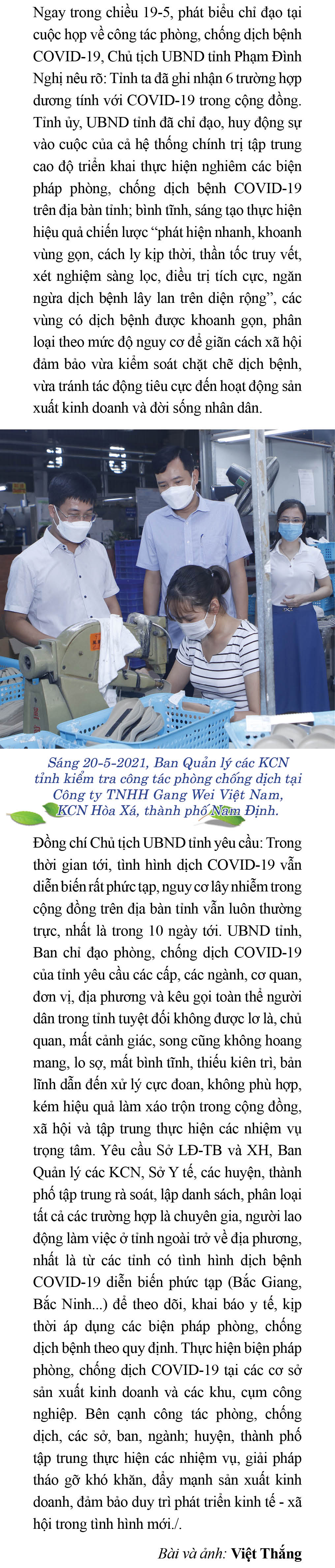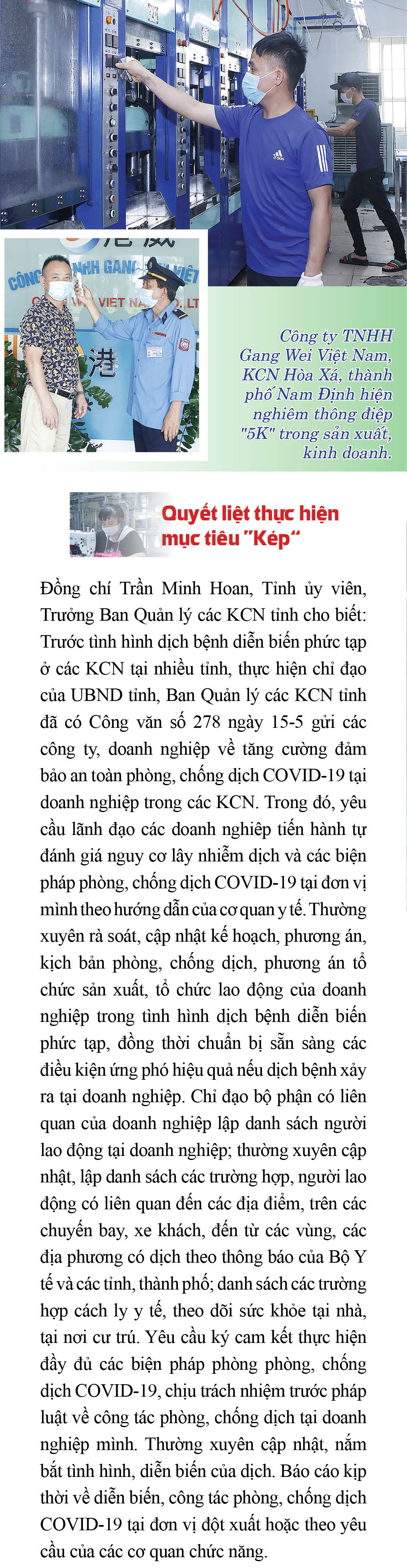 Đảm bảo phòng chống dịch và sản xuất kinh doanh hiệu quả tại các khu công nghiệp