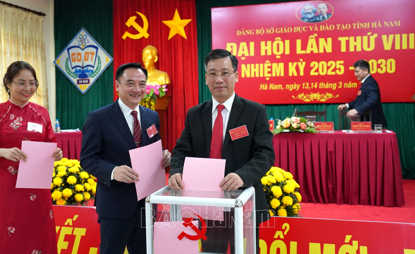 Các đại biểu bỏ phiếu bầu Ban Chấp hành Đảng bộ Sở GD&ĐT khóa VIII, nhiệm kỳ 2025-2030.