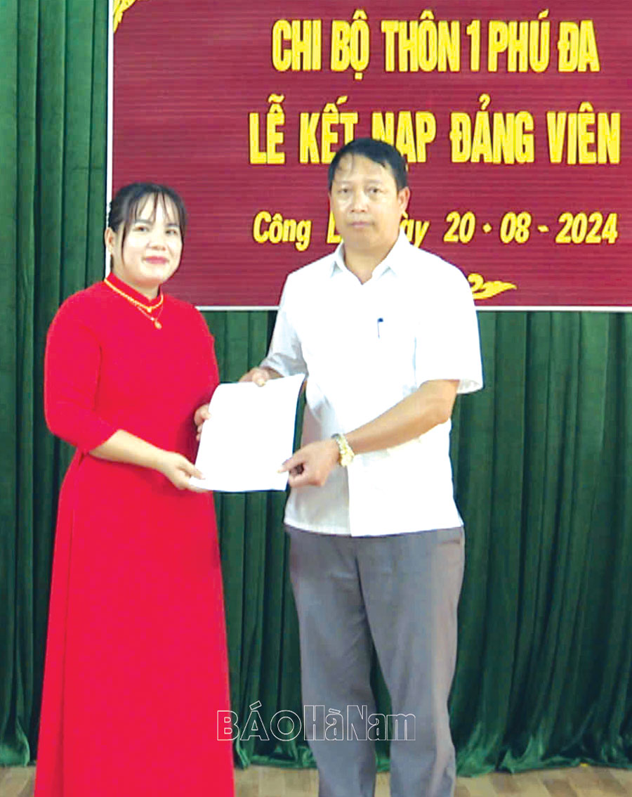 Lễ kết nạp đảng viên mới tại Chi bộ thôn 1 Phú Đa, Đảng bộ xã Công Lý (Lý Nhân).