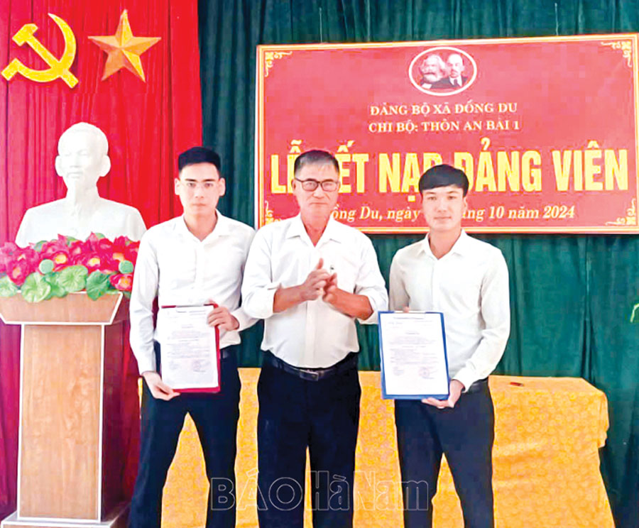 Chi bộ thôn An Bài 2 là một trong những điển hình về công tác phát triển đảng viên ở Đảng bộ xã Đồng Du. Từ đầu năm đến nay, chi bộ đã kết nạp được 2 đảng viên mới, đưa tổng số đảng viên trong chi bộ lên 50 đồng chí và dự kiến tiếp tục kết nạp 1 đảng viên vào dịp cuối năm. Trao đổi về kinh nghiệm trong công tác phát triển đảng viên, đồng chí Lê Văn Cấp, Bí thư Chi bộ thôn An Bài 2 cho biết: Thực hiện nhiệm vụ phát triển đảng viên, chi bộ ban hành nghị quyết chuyên đề, xây dựng chỉ tiêu cụ thể, phù hợp, khả thi theo từng năm. Ban chi ủy giao nhiệm vụ cho từng tổ chức đoàn thể về đẩy mạnh các cuộc vận động, phong trào thi đua, tạo môi trường rèn luyện, tu dưỡng, phấn đấu thuận lợi cho đoàn viên, hội viên, từ đó phát hiện nhân tố tích cực để cử đi học lớp nhận thức về Đảng, tạo nguồn kết nạp ổn định, chất lượng. Trong đó, có sự quan tâm đặc biệt đến những thanh niên đã hoàn thành nghĩa vụ quân sự hoặc đã học xong các trường trung cấp, cao đẳng, đại học về công tác, lao động tại địa phương, tạo nguồn để bồi dưỡng, đào tạo đội ngũ cán bộ trẻ cho nhiệm kỳ kế tiếp.