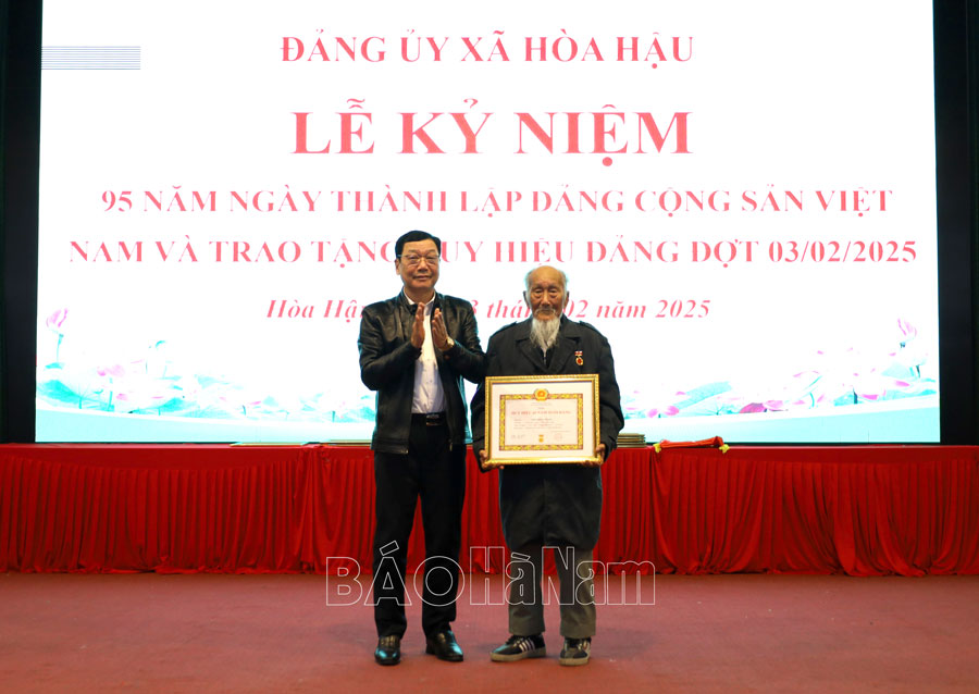 Chiều 3/2, Đảng bộ xã Hòa Hậu (Lý Nhân) tổ chức lễ kỷ niệm 95 năm Ngày thành lập Đảng Cộng sản Việt Nam (3/2/1930 - 3/2/2025) và trao tặng Huy hiệu Đảng đợt 3/2 cho các đảng viên đang sinh hoạt tại các chi bộ trên địa bàn xã.