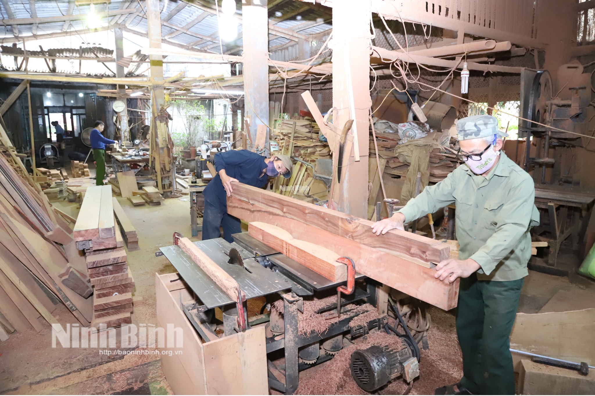 Cơ sở sản xuất đồ gỗ của ông Hoàng Hữu Doãn, xóm 5 Xuân Trung, xã Xuân Hưng cho thu nhập ổn định.