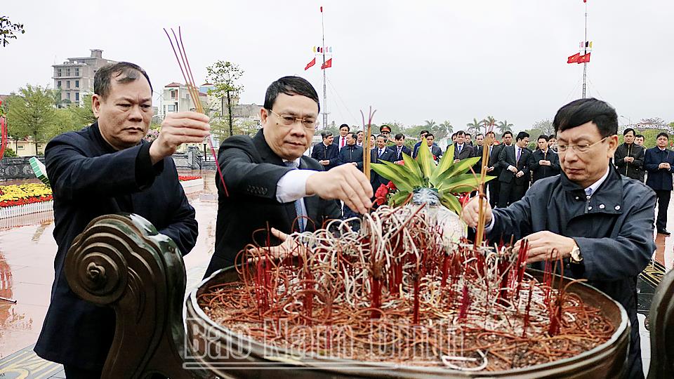 | Các đồng chí lãnh đạo tỉnh dâng hương tại Tượng đài Tổng Bí thư Trường Chinh, thị trấn Xuân Trường (Xuân Trường). |