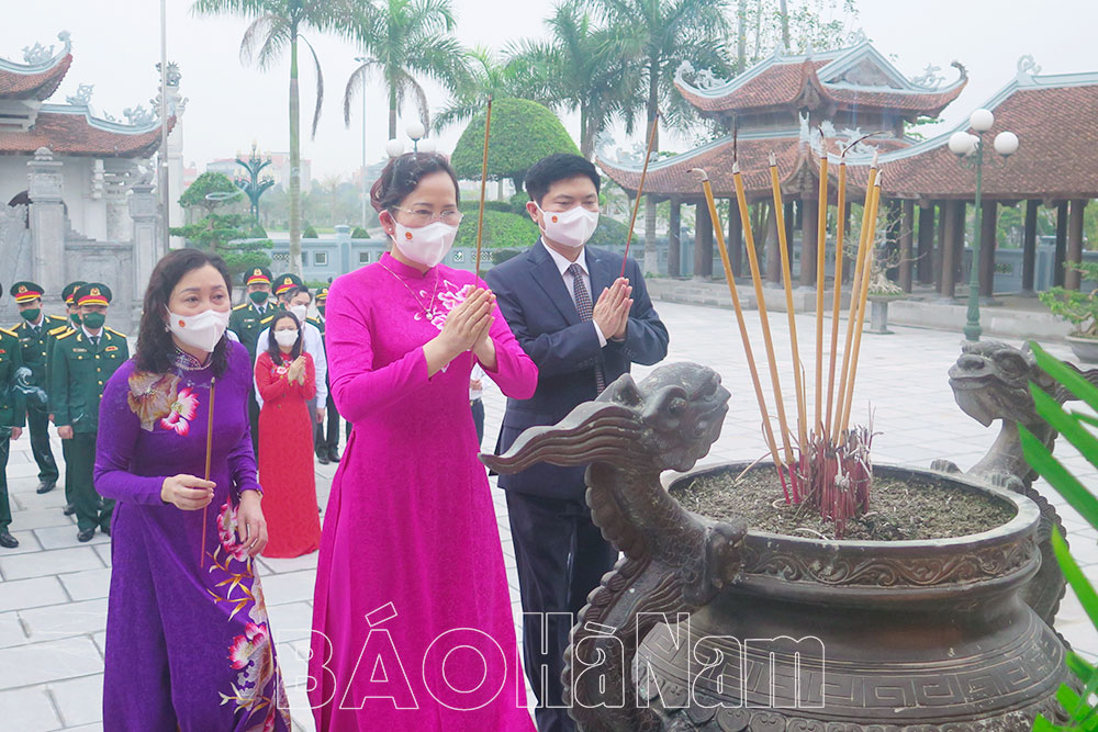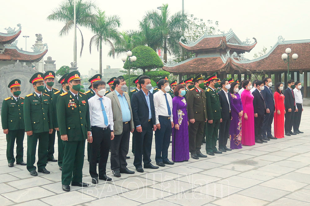 Dự lễ dâng hương có các đồng chí: Lê Thị Thủy, Ủy viên Trung ương Đảng, Bí thư Tỉnh ủy, Chủ tịch HĐND tỉnh; Đinh Thị Lụa, Phó Bí thư Thường trực Tỉnh ủy; Trương Quốc Huy, Phó Bí thư Tỉnh ủy, Chủ tịch UBND tỉnh, Trưởng đoàn Đại biểu Quốc hội tỉnh; các Ủy viên Ban Thường vụ Tỉnh ủy, Thường trực HĐND, lãnh đạo UBND, Ủy ban MTTQ tỉnh; đại biểu Bộ CHQS tỉnh, Công an tỉnh, Hội Cựu chiến binh tỉnh và thành phố Phủ Lý cùng đông đảo cán bộ, chiến sĩ LLVT tỉnh.