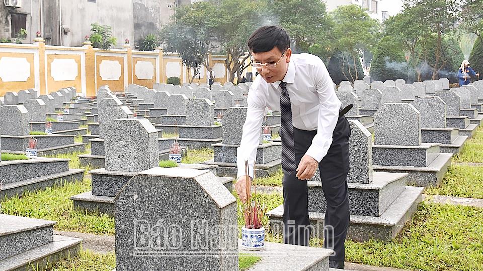 | Các đồng chí lãnh đạo tỉnh dâng hương tưởng nhớ công lao các Anh hùng Liệt sĩ tại Nghĩa trang Liệt sĩ thành phố Nam Định. |