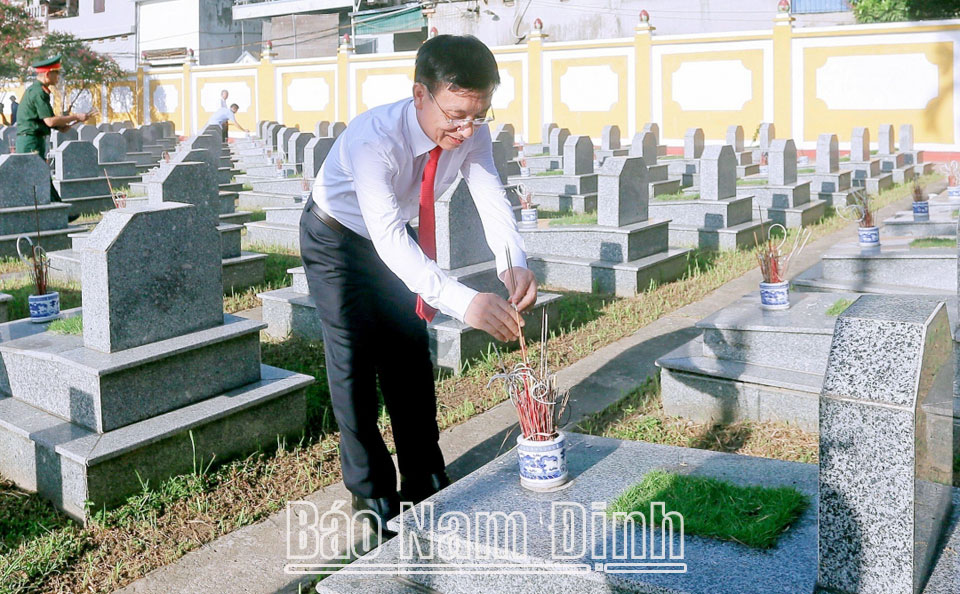 Trải qua các cuộc kháng chiến giải phóng dân tộc, bảo vệ Tổ quốc và làm nghĩa vụ quốc tế, tỉnh Nam Định có trên 36 nghìn liệt sĩ. Trong không khí trang nghiêm, đoàn đại biểu đã thành kính đặt vòng hoa mang dòng chữ “Đời đời nhớ ơn các Anh hùng Liệt sĩ” và dâng hương tưởng nhớ các Liệt sĩ đã anh dũng chiến đấu, hy sinh vì nền độc lập, tự do của Tổ quốc, vì nghĩa vụ quốc tế cao cả, bảo vệ quê hương, đất nước.