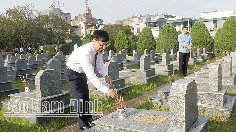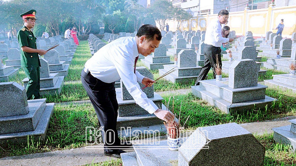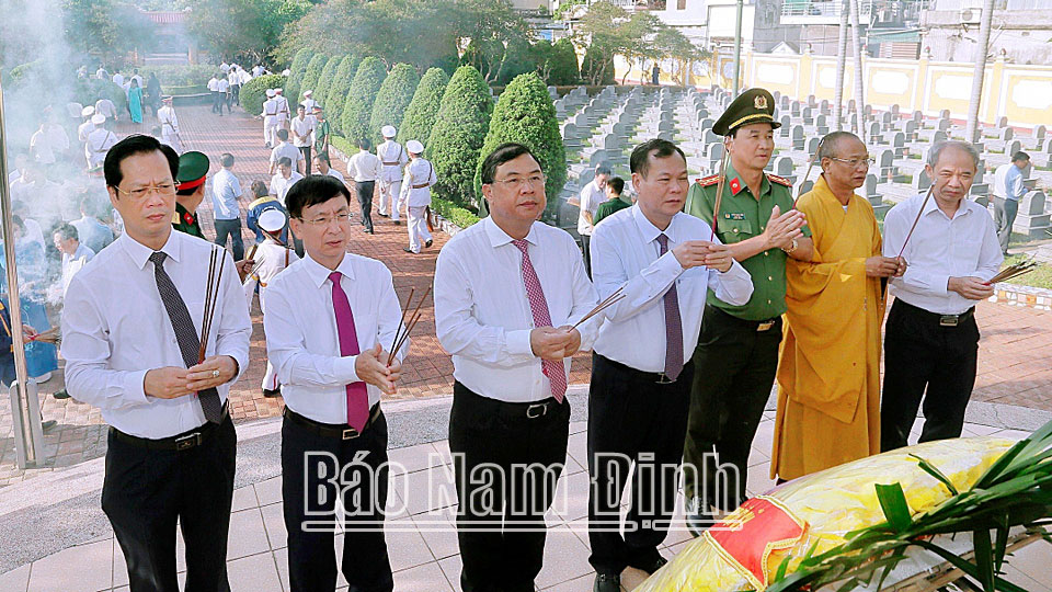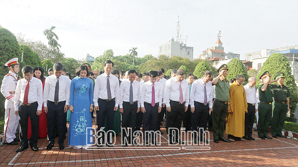 Nhân kỷ niệm 78 năm Cách mạng Tháng Tám và Quốc khánh 2-9 (1945 - 2023), sáng 30-8, tại Đài tưởng niệm các Anh hùng Liệt sĩ tỉnh và Nghĩa trang Liệt sĩ thành phố Nam Định, Tỉnh ủy, HĐND, UBND, Ủy ban MTTQ, lực lượng vũ trang (LLVT) tỉnh và Thành ủy, HĐND, UBND, Ủy ban MTTQ và LLVT thành phố Nam Định tổ chức lễ dâng hương, đặt vòng hoa tưởng nhớ công lao các Anh hùng Liệt sĩ.