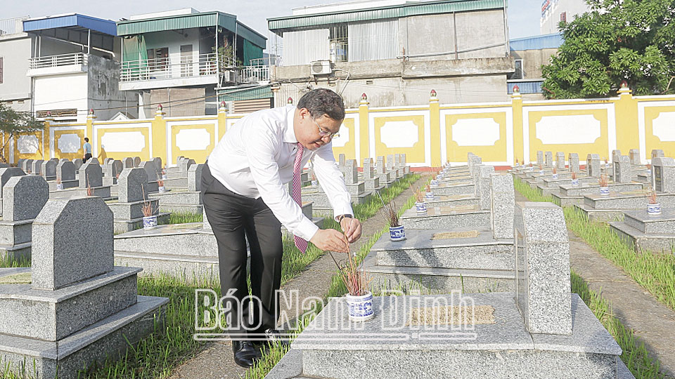 | Đồng chí Phạm Đình Nghị, Phó Bí thư Tỉnh ủy, Chủ tịch UBND tỉnh thắp hương phần mộ các Anh hùng Liệt sĩ tại Nghĩa trang Liệt sĩ thành phố Nam Định. |