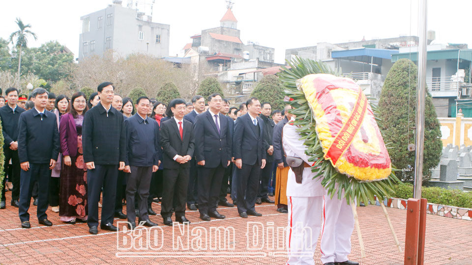 | Các đồng chí lãnh đạo tỉnh và thành phố Nam Định dâng hương, đặt vòng hoa tưởng nhớ công lao các Anh hùng Liệt sĩ tại Nghĩa trang Liệt sĩ thành phố Nam Định. |