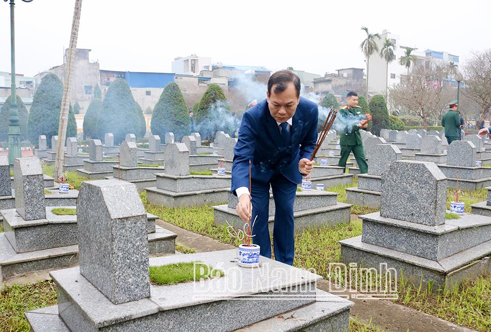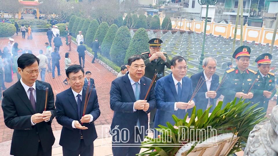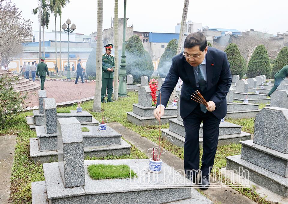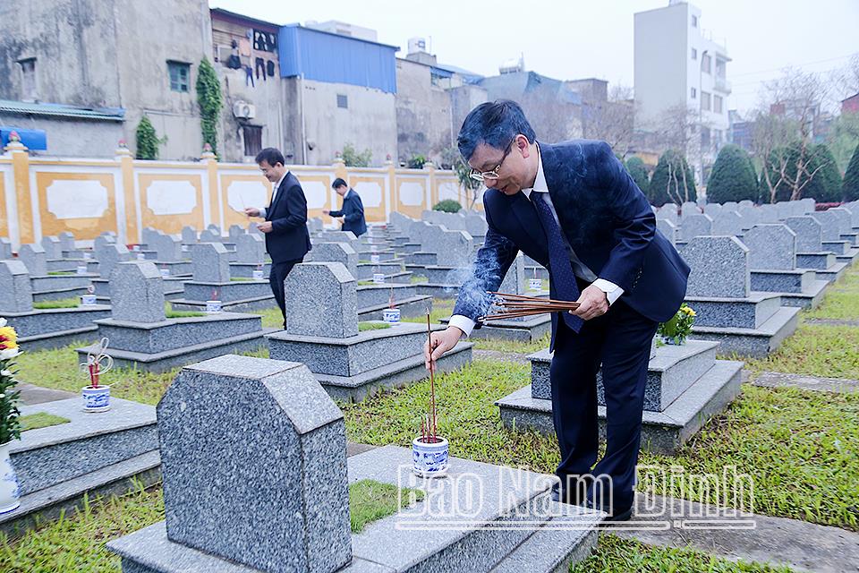 | Các đồng chí lãnh đạo tỉnh dâng hương tưởng nhớ công lao các Anh hùng Liệt sĩ tại Nghĩa trang Liệt sĩ thành phố Nam Định. |