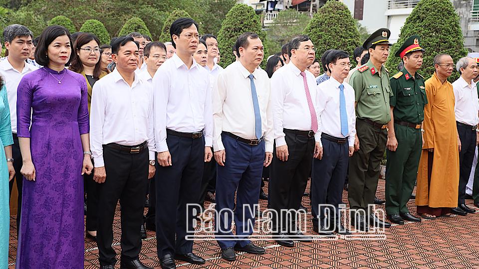 | Các đồng chí lãnh đạo tỉnh và thành phố Nam Định dâng hương, đặt vòng hoa tưởng nhớ công lao các Anh hùng Liệt sĩ tại Đài tưởng niệm các Anh hùng Liệt sĩ tỉnh. |