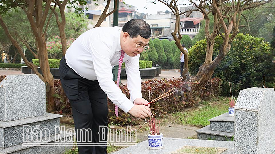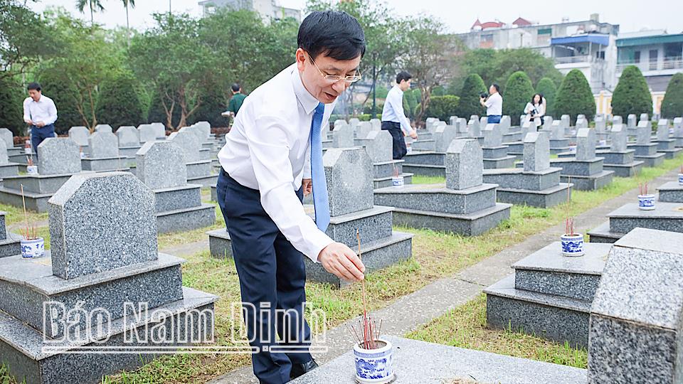 Sau lễ dâng hương, các đồng chí lãnh đạo tỉnh và thành phố đã thắp hương phần mộ các Anh hùng Liệt sĩ tại Nghĩa trang Liệt sĩ thành phố Nam Định./.