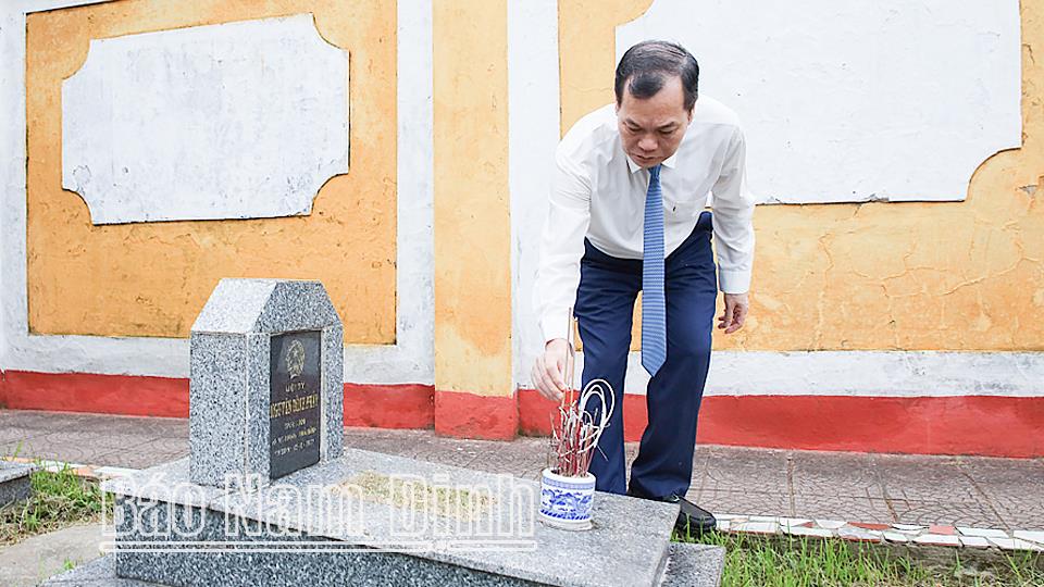 | Đồng chí Phạm Gia Túc, Ủy viên BCH Trung ương Đảng, Bí thư Tỉnh ủy thắp hương phần mộ các Anh hùng Liệt sĩ tại Nghĩa trang Liệt sĩ thành phố Nam Định. |