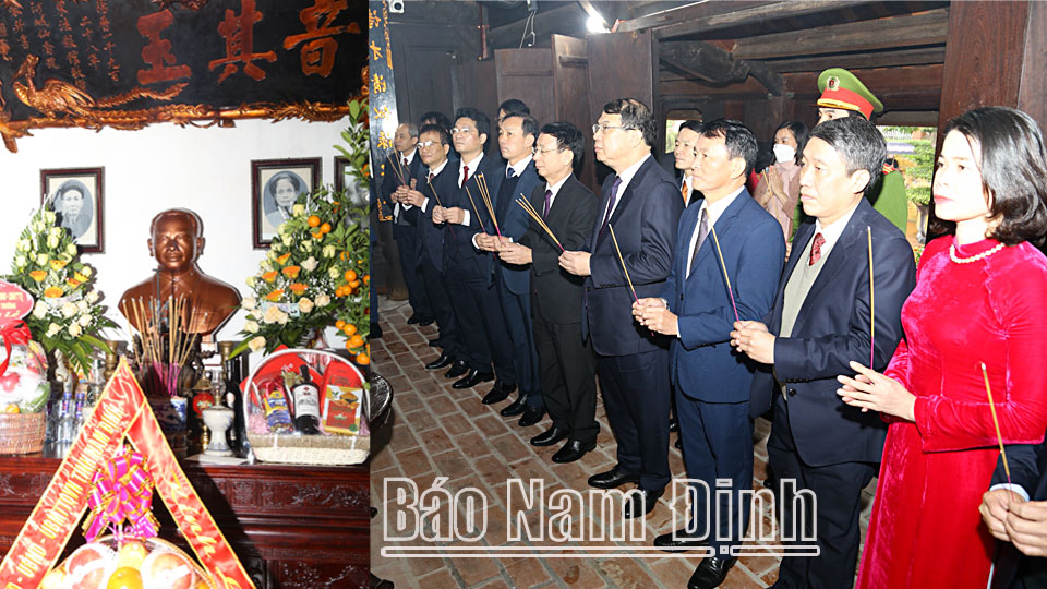| Các đồng chí lãnh đạo tỉnh dâng hương tại Khu lưu niệm Tổng Bí thư Trường Chinh ở xã Xuân Hồng (Xuân Trường). |