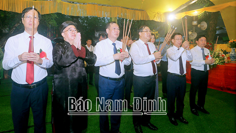 Dự Lễ dâng hương có các đồng chí: Phạm Gia Túc, Ủy viên BCH Trung ương Đảng, Bí thư Tỉnh ủy; Lê Quốc Chỉnh, Phó Bí thư Thường trực Tỉnh ủy, Chủ tịch HĐND tỉnh, Trưởng đoàn Đoàn đại biểu Quốc hội tỉnh; Phạm Đình Nghị, Phó Bí thư Tỉnh ủy, Chủ tịch UBND tỉnh; các đồng chí Ủy viên Ban TVTU, Thường trực HĐND, lãnh đạo UBND tỉnh; lãnh đạo các sở, ban, ngành và thành phố Nam Định.