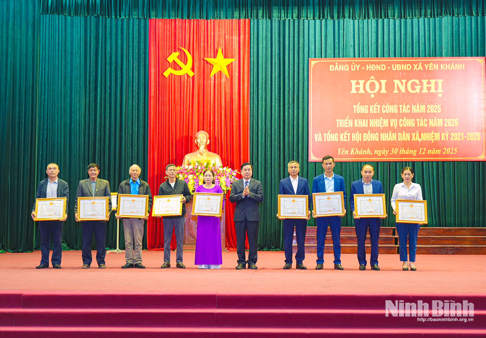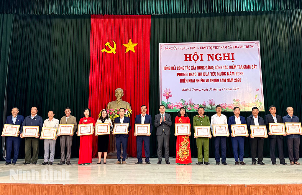 Tại hội nghị, Đảng uỷ, UBND xã Khánh Trung đã khen thưởng cho các tập thể và cá nhân có thành tích xuất sắc trong thực hiện nhiệm vụ năm 2025 và phát động phong trào thi đua năm 2026.