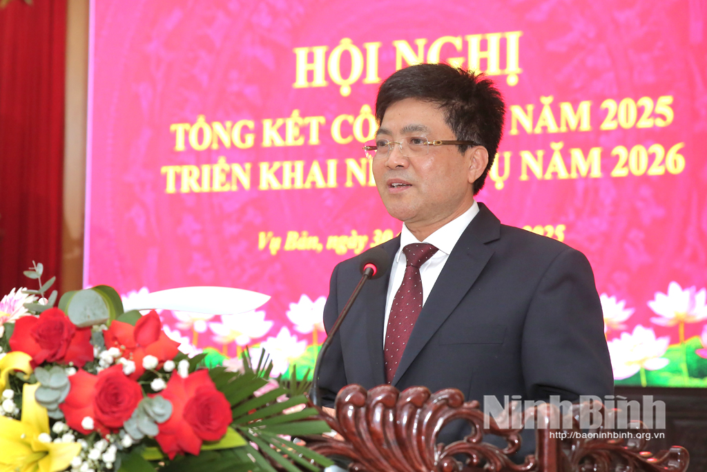 Về phương hướng, nhiệm vụ năm 2026, Đảng bộ xã Vụ Bản xác định tiếp tục nâng cao năng lực lãnh đạo, sức chiến đấu của tổ chức đảng, xây dựng hệ thống chính trị trong sạch, vững mạnh; tập trung tổ chức thành công cuộc bầu cử đại biểu Quốc hội khóa XVI và đại biểu HĐND các cấp nhiệm kỳ 2026 - 2031.