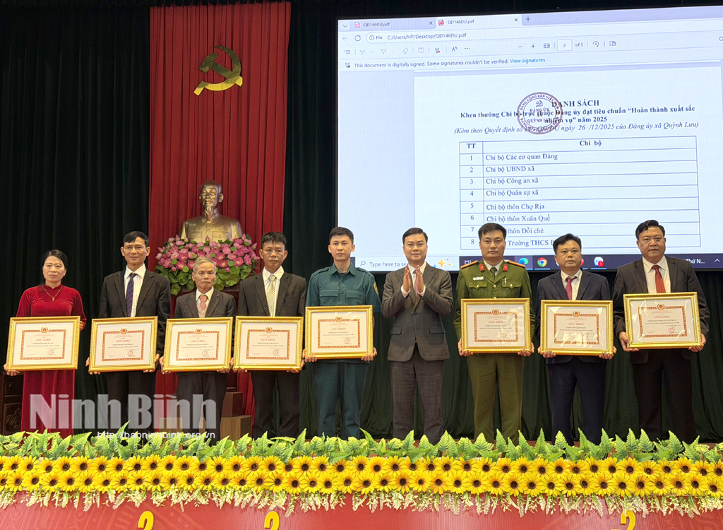 Tại hội nghị, Đảng ủy, UBND xã Quỳnh Lưu đã khen thưởng cho các tập thể, cá nhân có thành tích xuất sắc trong năm 2025.