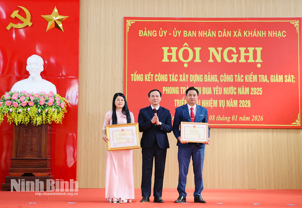 *Ngày 8/1, Đảng ủy, UBND xã Khánh Nhạc tổ chức hội nghị tổng kết công tác xây dựng Đảng, công tác kiểm tra, giám sát; phong trào thi đua yêu nước và triển khai nhiệm vụ năm 2026. Dự hội nghị có lãnh đạo Ban Văn hóa - xã hội HĐND tỉnh, Ban Tổ chức Tỉnh ủy, Ban Tuyên giáo và Dân vận Tỉnh ủy, Văn phòng Tỉnh ủy.