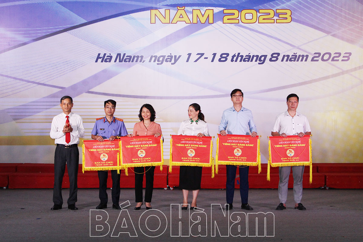 Các đại biểu trao Cờ cho các tập thể đạt giải Nhất, Nhì, Ba tại liên hoan.