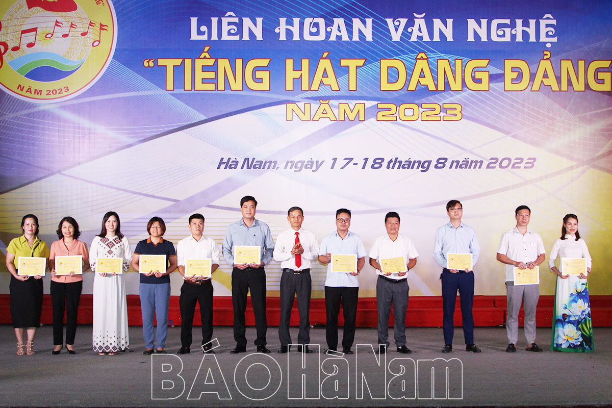 Kết thúc liên hoan, Ban tổ chức đã trao giải Nhất cho các tiết mục của Đảng bộ Cục Thuế tỉnh; Đảng bộ Sở Văn hóa, Thể thao và Du lịch; Đảng bộ Sở Nông nghiệp và Phát triển Nông thôn; Đảng bộ Văn phòng Tỉnh ủy; Đảng bộ Kho bạc Nhà nước tỉnh; Đảng bộ Đài Phát thanh và Truyền hình tỉnh.